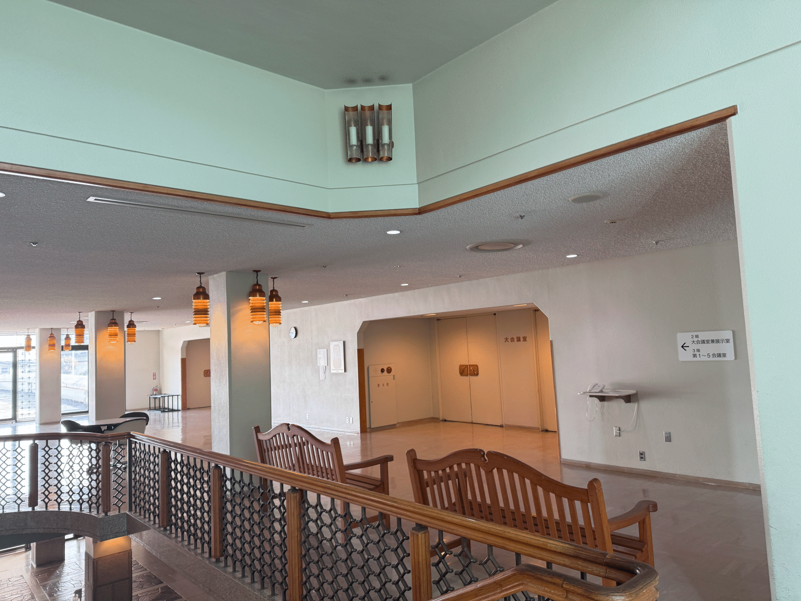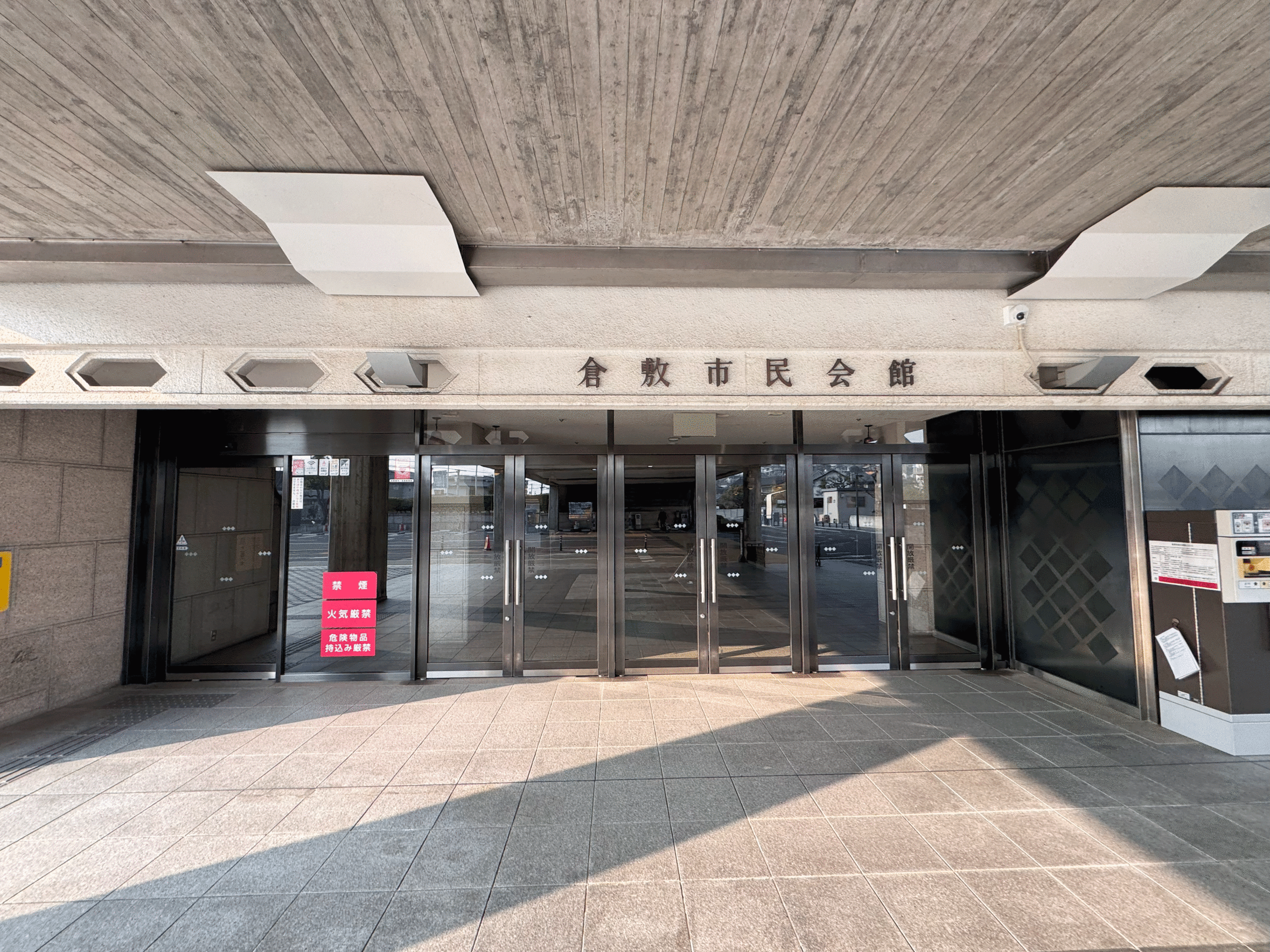 倉敷市民会館の屋外・2階観客席・3階ロビー・喫茶店内・各更衣室